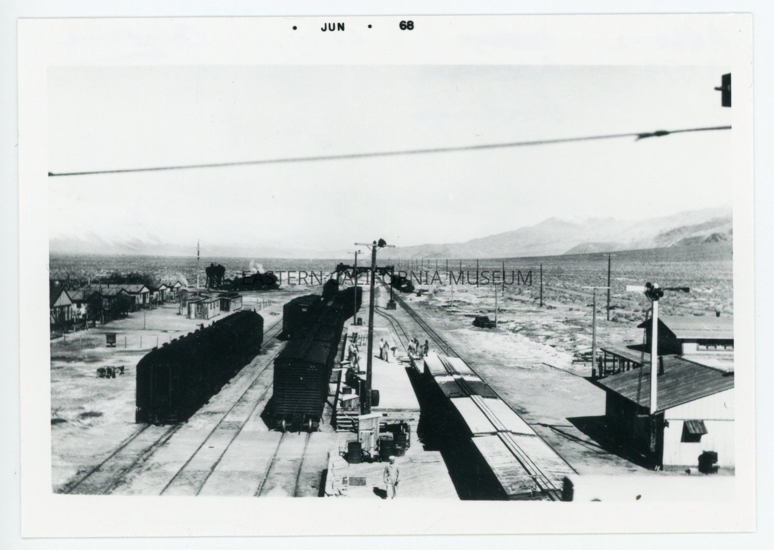 Copy of a photo of Owenyo showing trains, the school, etc. It was printed in June 1968, but the original photo dates to around 1929.