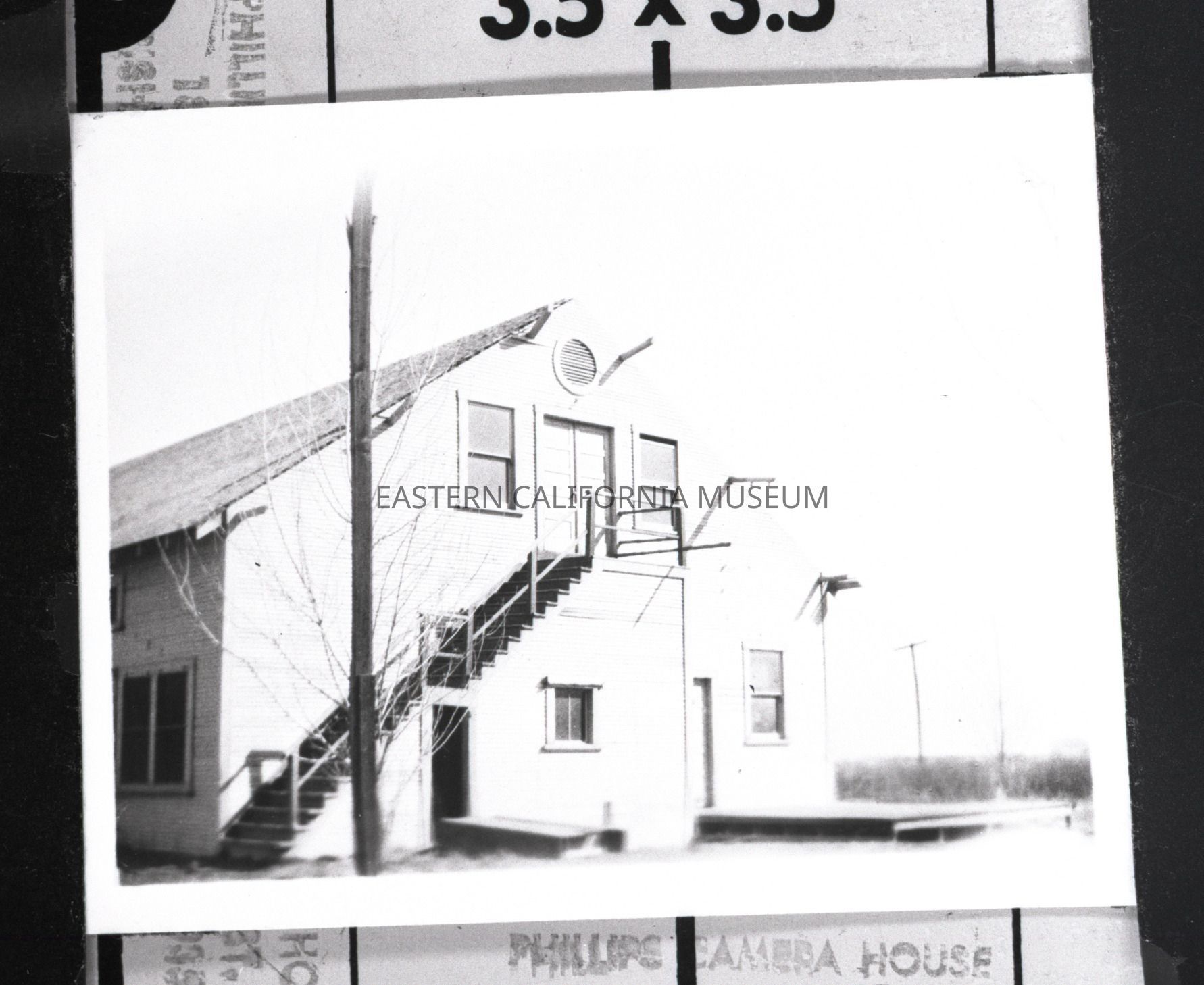 Back of Manzanar community hall/packing house. Negative only, no print.