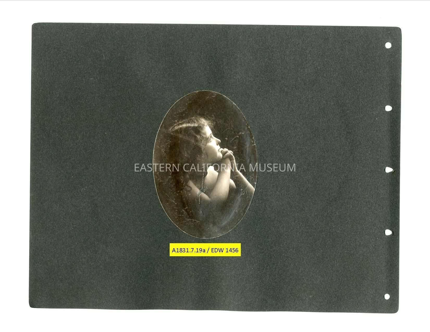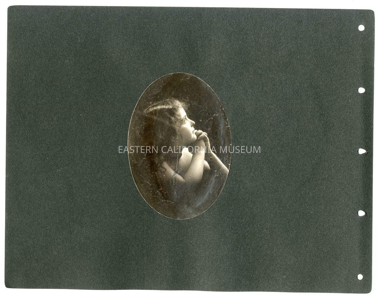 A1831.7.19a: Studio portrait of Helen Gunn as a young girl with her hands clasped in a praying position.