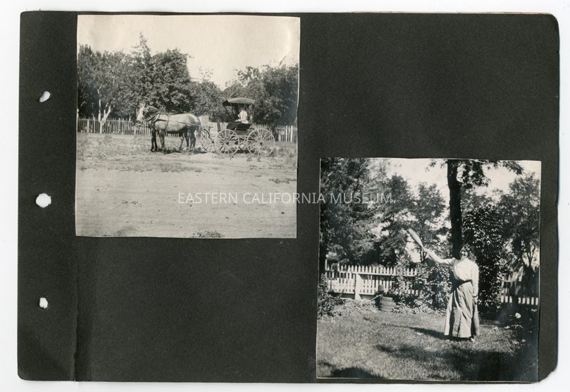 A1831.8.5a: Exterior photo of a horse-drawn buggy. There are two people inside.
