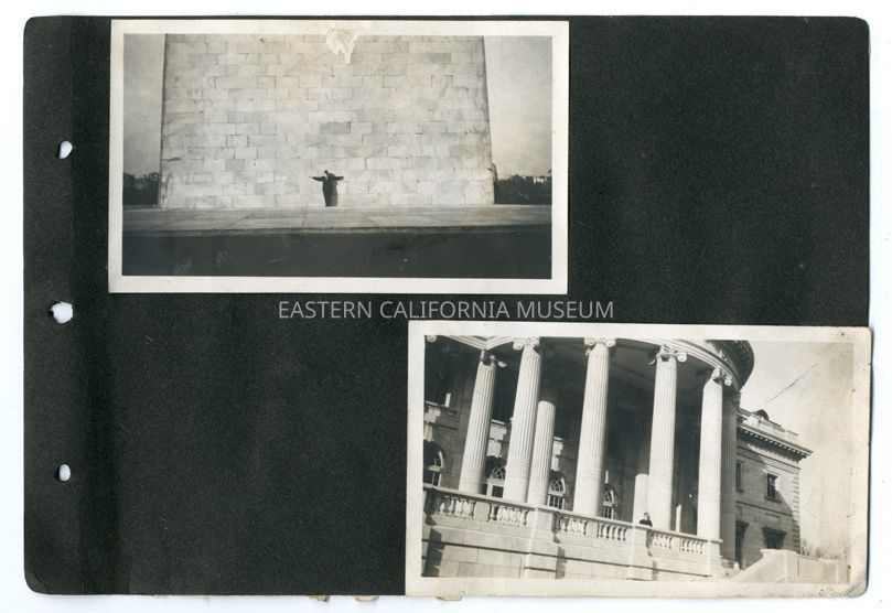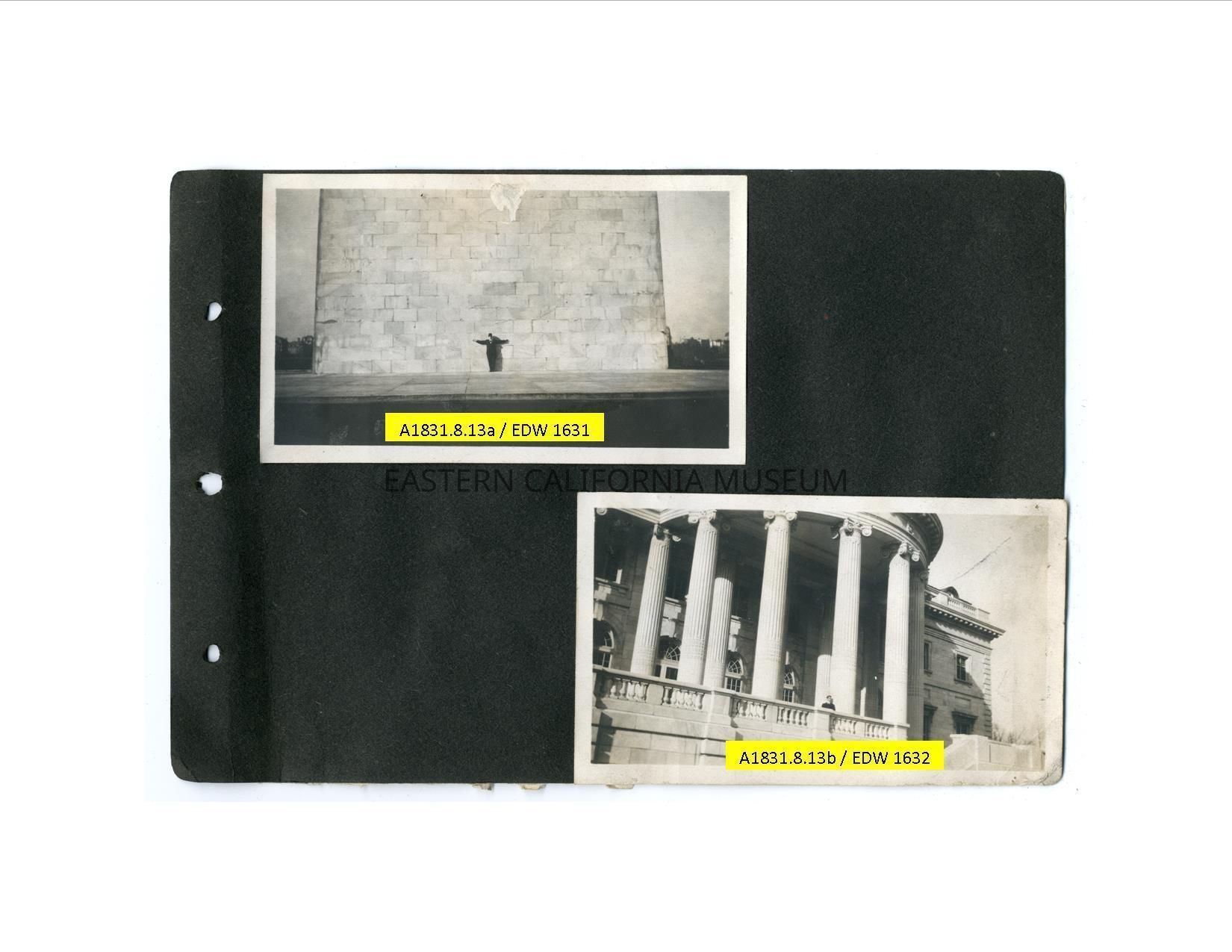 A1831.8.13b: Exterior photo of a man standing by an ornate building. It has a half-circle colonnade.Collection
