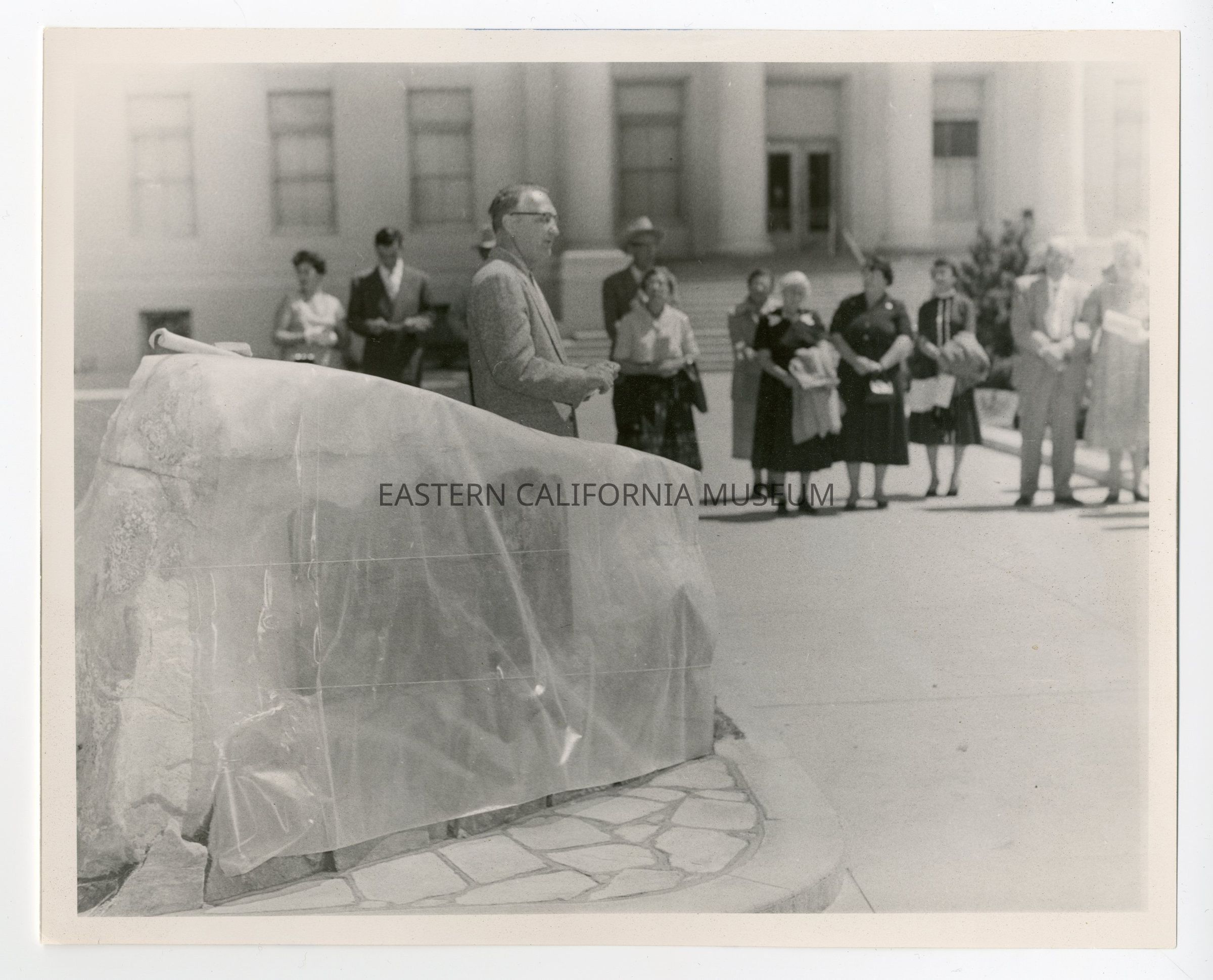 2024.0.225--Crowd of people standing in front of the Courthouse, possibly for the unveiling of a historical monument.