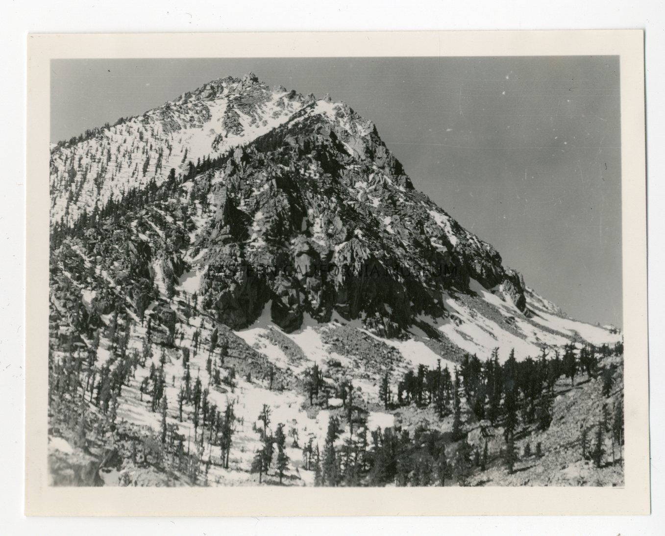 Photo of a snow-covered rocky mountain peak. Location unknown.