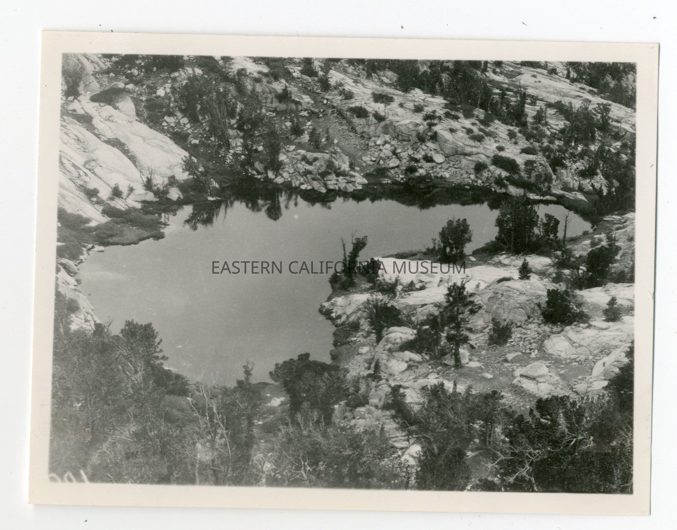 Photo taken from a high vantage point looking down at a small lake. Location unknown.