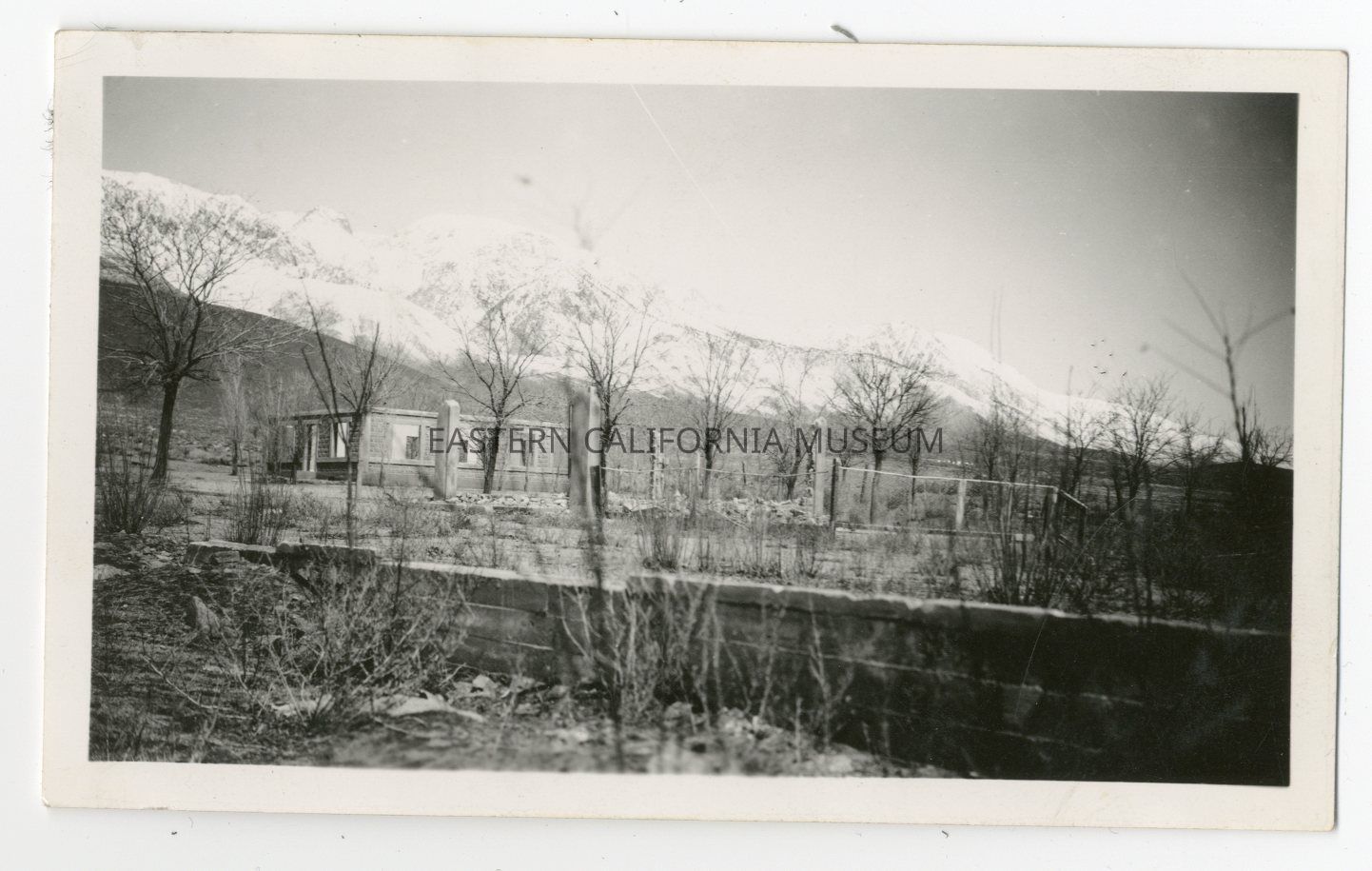 A different copy of this photo (2024.0.466) has the following information: North of Independence at 8 Mile Ranch on Highway 6 and 395 west side. Demolished by DWP in 1930s.