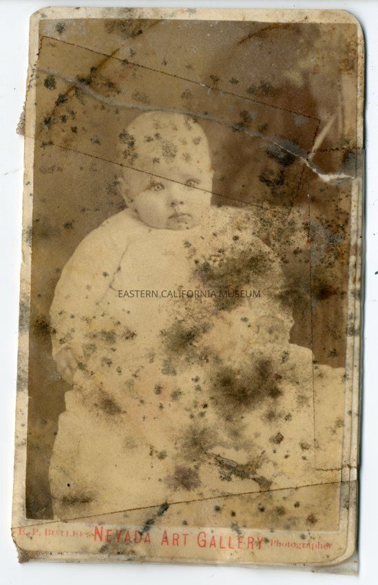 Photograph of unidentified baby. Printed on lower edge: Nevada Art Gallery. The photograph is moldy.