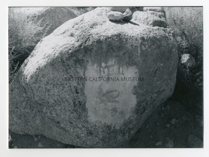Photo of a rock with what looks to be a few characters in Japanese carved in it.Photograph Details