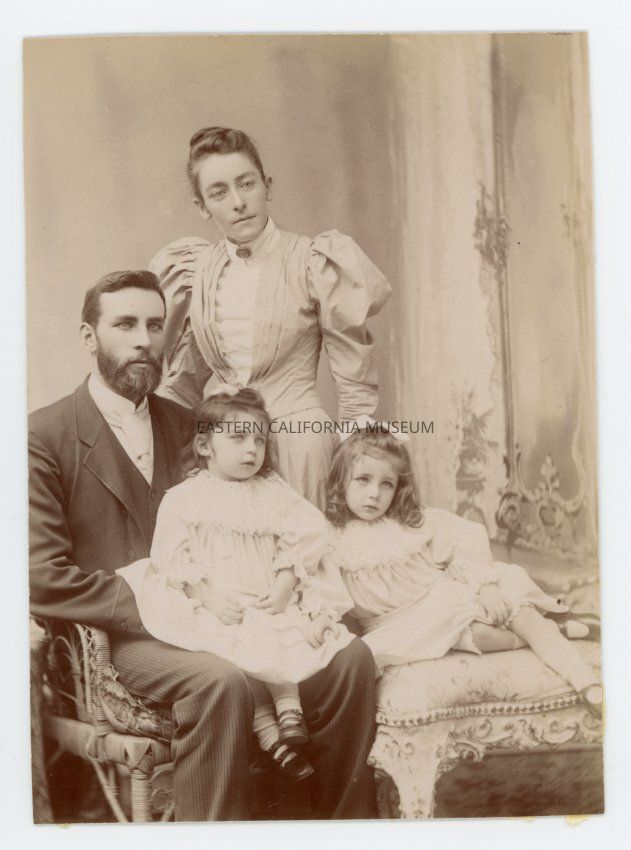 Studio portrait of a family of four: husband, wife, and two small children. This is the only photo in the entire album that is not mounted (though it may have been in the past).