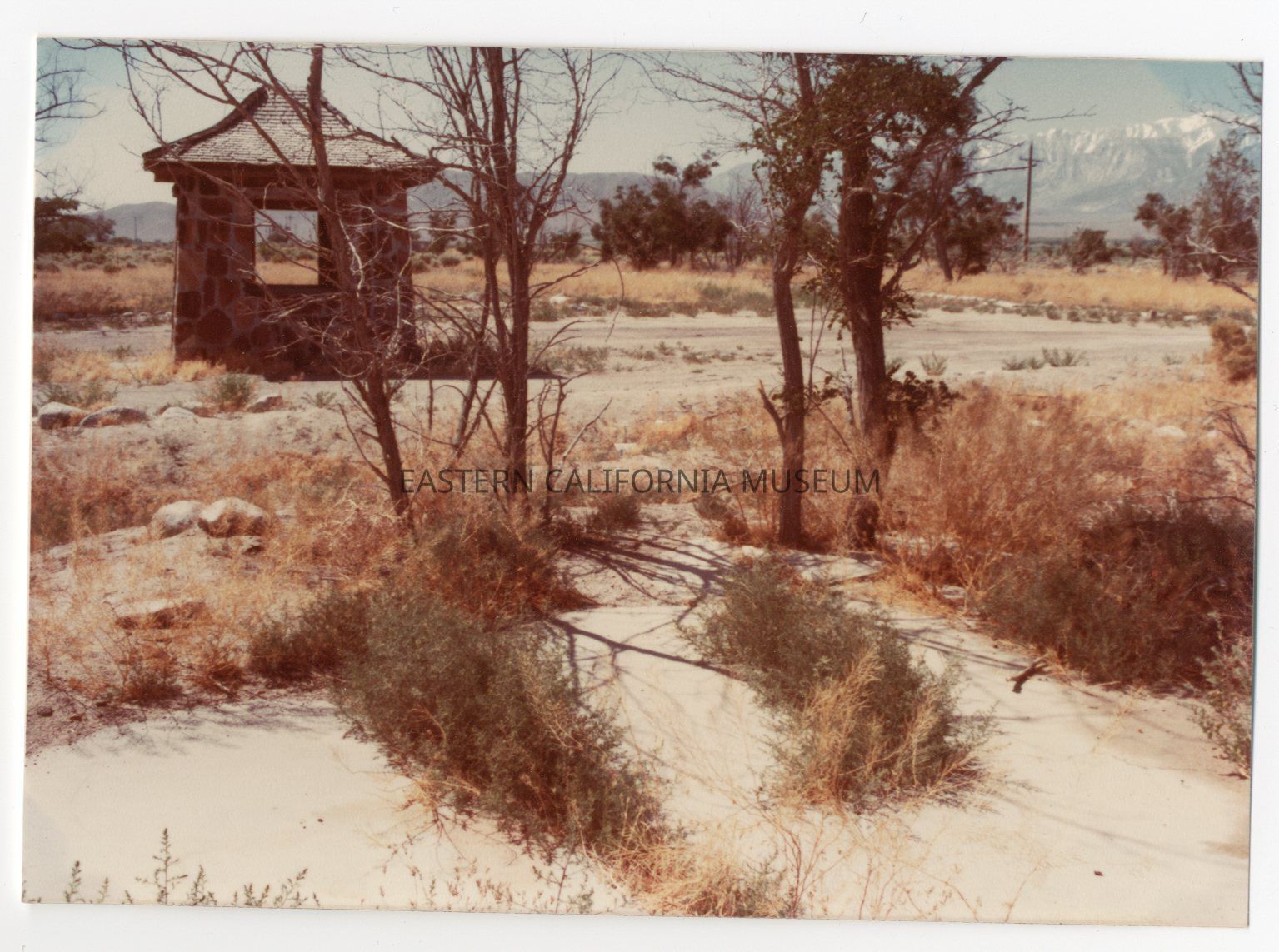Color photo of the sentry post at Manzanar War Relocation Center.Photograph Details
