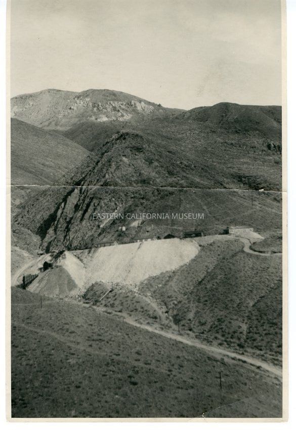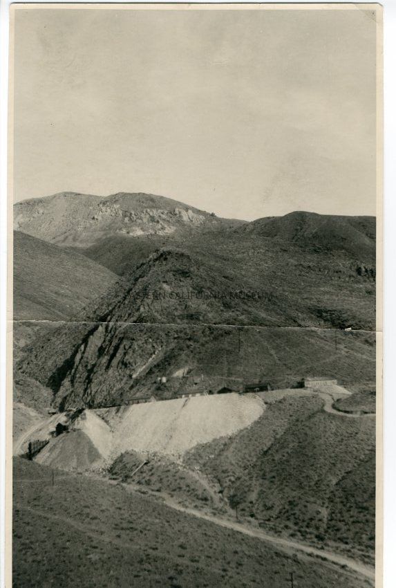 Written on reverse in pencil: "Estelle mine about 3,500 ft. below Cerro Gordo." Stamped on reverse with: "Enlarged by Earl V. Lewis Co. / 226 W. 4th & 421 W. 7th St. / Los Angeles."