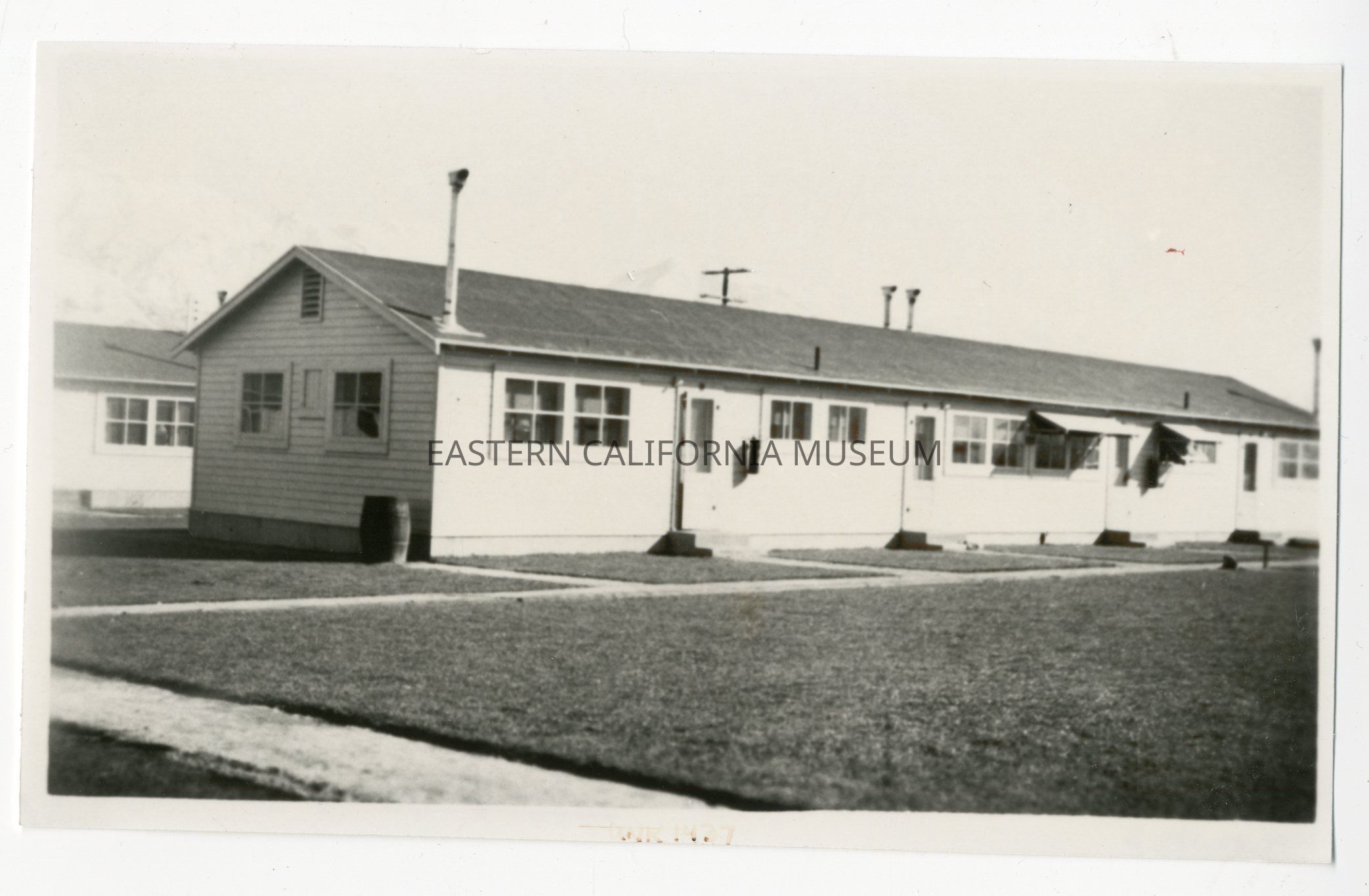 Copy of a photo of a building at Manzanar War Relocation Center--it doesn't appear to be a regular barrack. This copy was printed in March 1942.