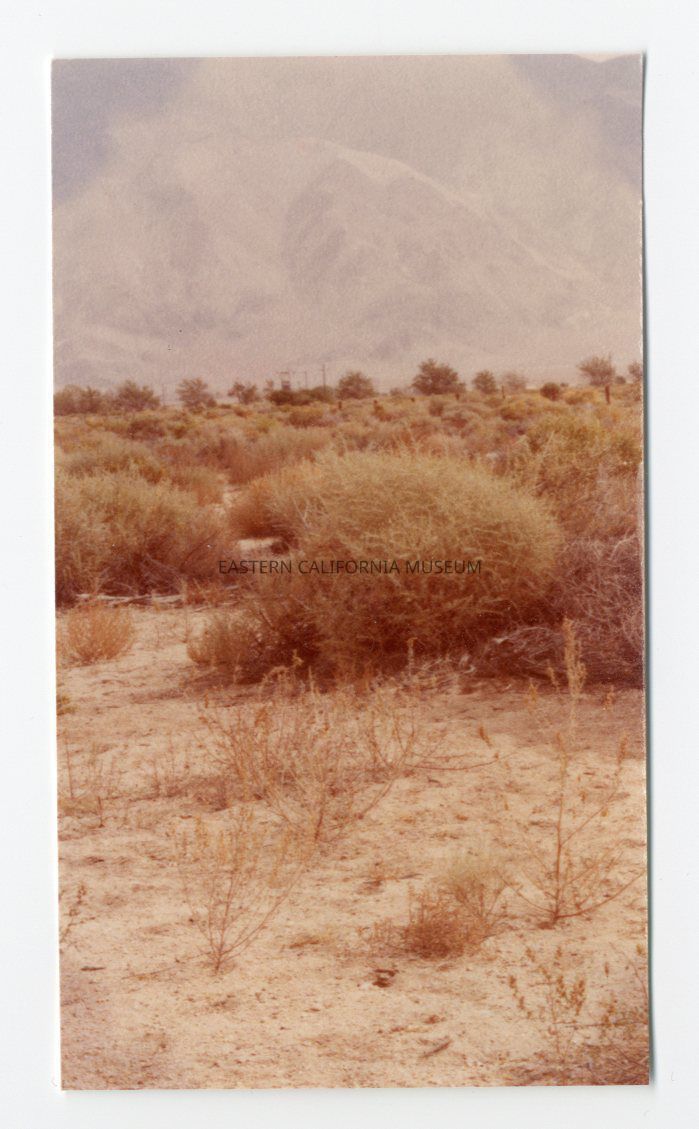 Cut-down color photo of the landscape at Manzanar.Photograph Details