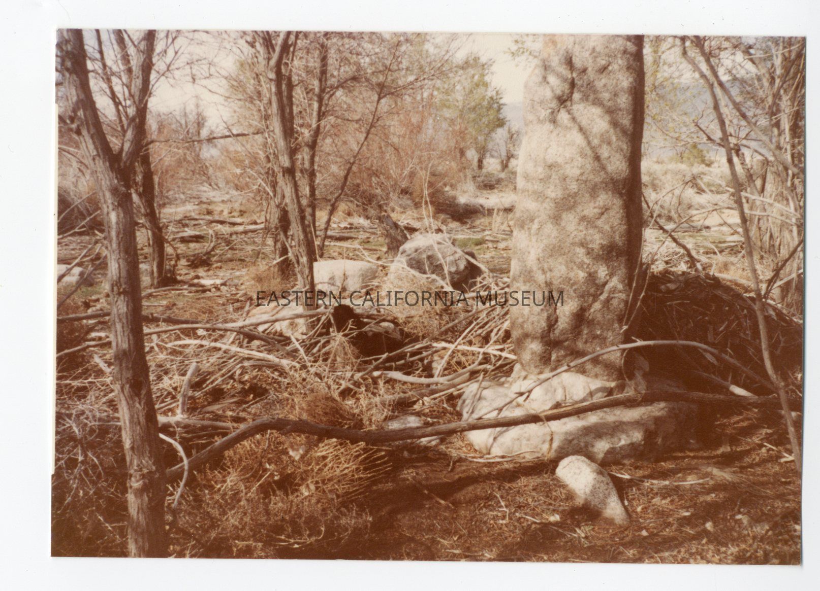 Color photo of a rock pillar at Manzanar. It was likely in one of the gardens.