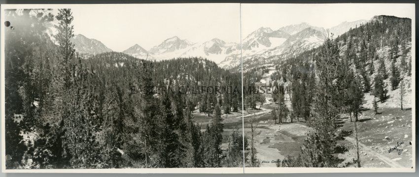 This is a panorama printed on two sheets with cloth backing. Stamped on back is "Permission to Publish Frashers Copyrighted Photos Must be Secured From Frashers Inc. Pomona, Calif. Photo No. 7-55."