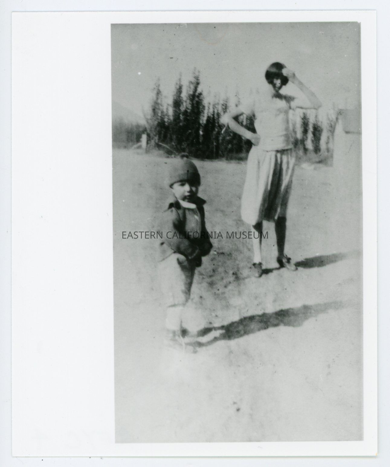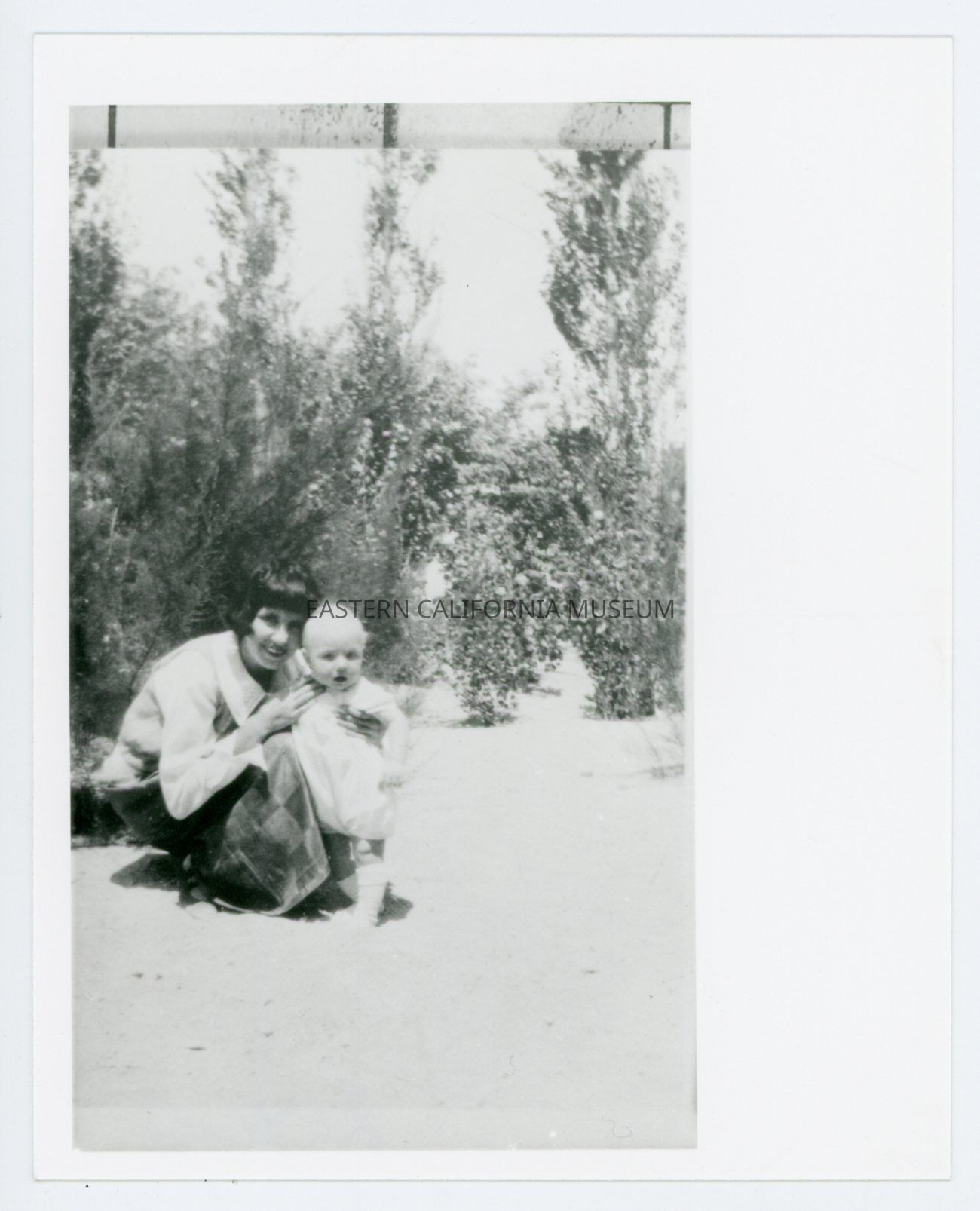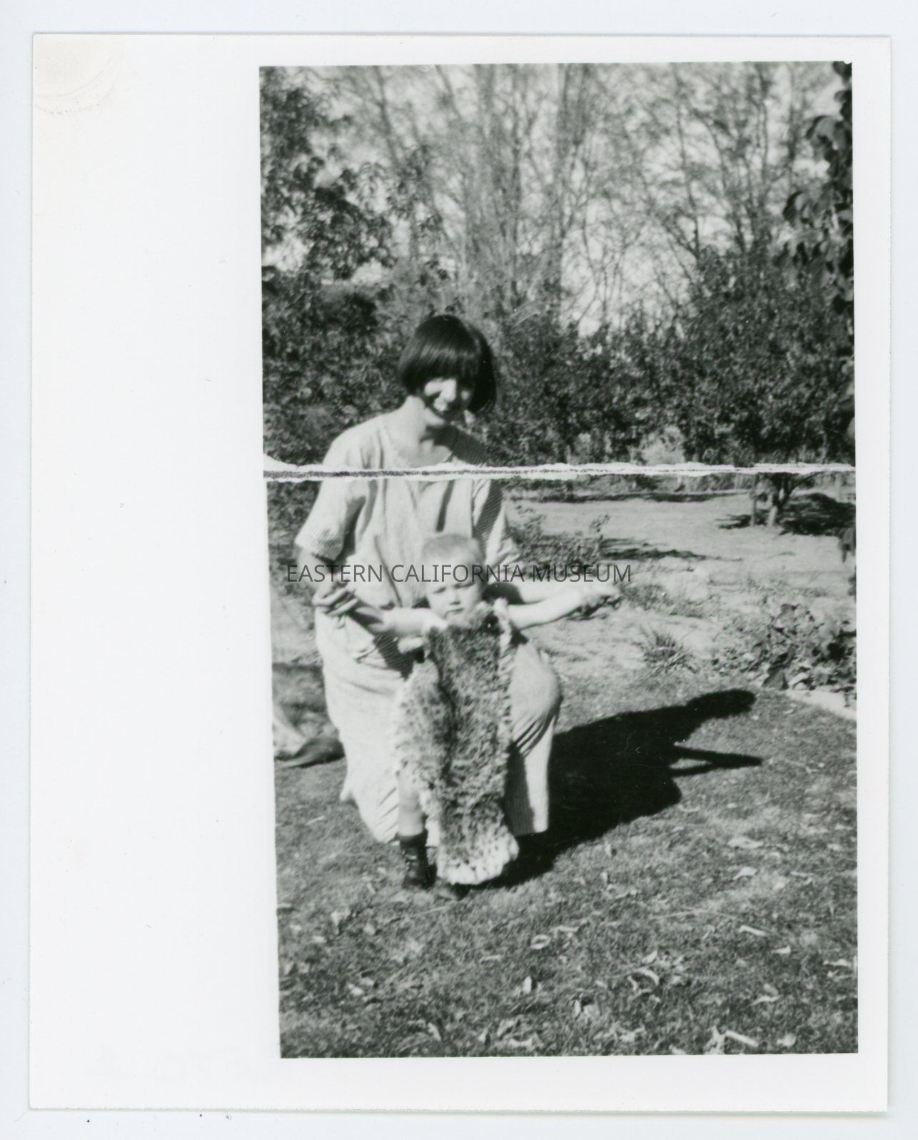 2008.19.2--Clyde at age 11 months, with his mother Ada. He is dressed in an animal pelt. 1924.