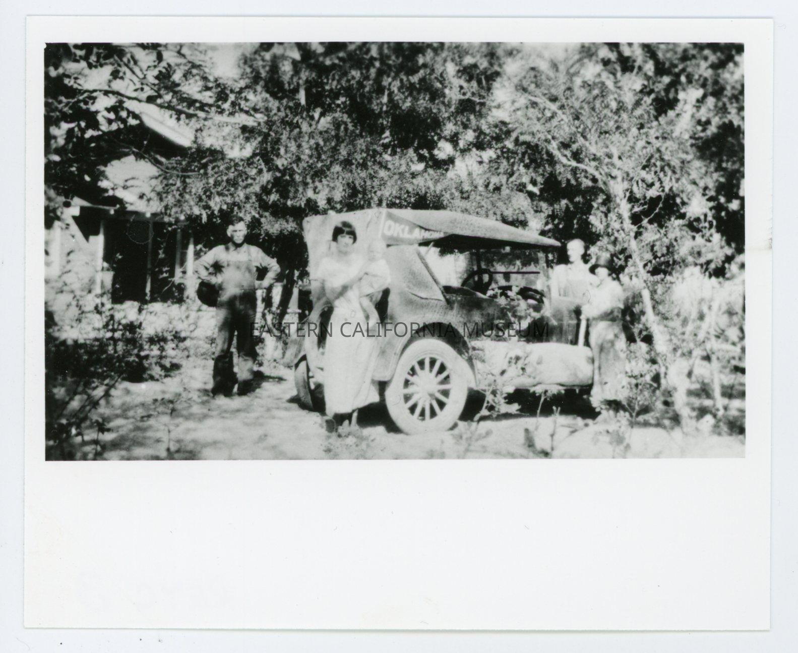 2008.19.3--Taken the day Ada and Clyde arrived at Aberdeen and the home of John Jones on August 14, 1924. From left to right: John Jones, Ada Reynolds holding Clyde, Bill Kemp, and Maude Jones Kemp.