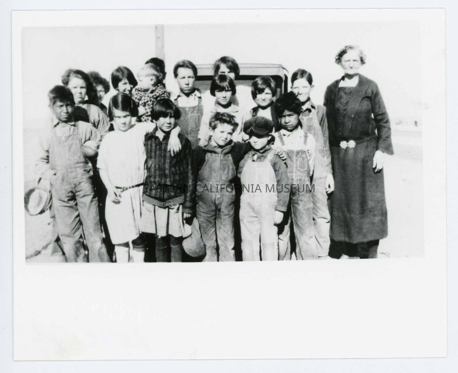 2008.19.7--Aberdeen school, 1926. Ruth holding Clyde in left back row. Wesley McAfee [McGee?] on right next to older woman (teacher?).