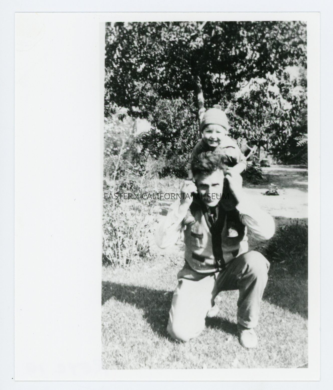 2008.19.10--John Jones and Clyde (5 years old) on his shoulders at Aberdeen, 1928.