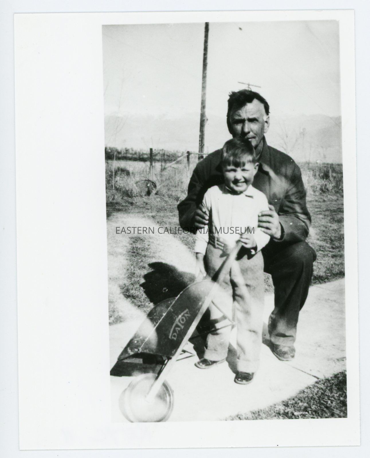 2008.19.11--John Jones and Clyde (5 years old) with a toy "Daton" wheelbarrow at Aberdeen, 1928.Collection