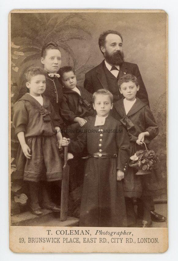 Mounted studio portrait of a family with four children. Photographer was T. Coleman of London. This photo was located behind 1985.1.1.21.