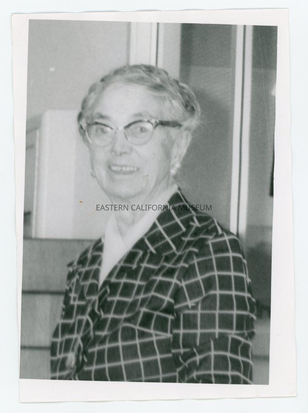 Print of an elderly lady with glasses, who is identified on the reverse as Myrtle Tate Myles, sister of Clarice Tate Uhlmeyer.