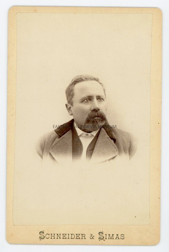 Mounted bust-length studio portrait of an unidentified man with a white collar but no tie. Photographer was Schneider and Simas.Collection
