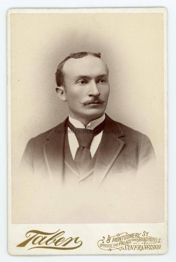 Mounted bust-length studio portrait of an unidentified man with a receeding hairline. Photographer was Taber of San Francisco.