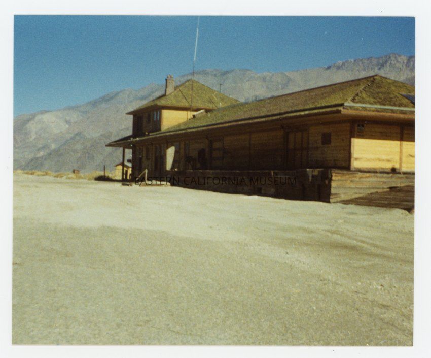 Color photo of the Lone Pine railroad station. Written on reverse: Lone Pine station, 1991.