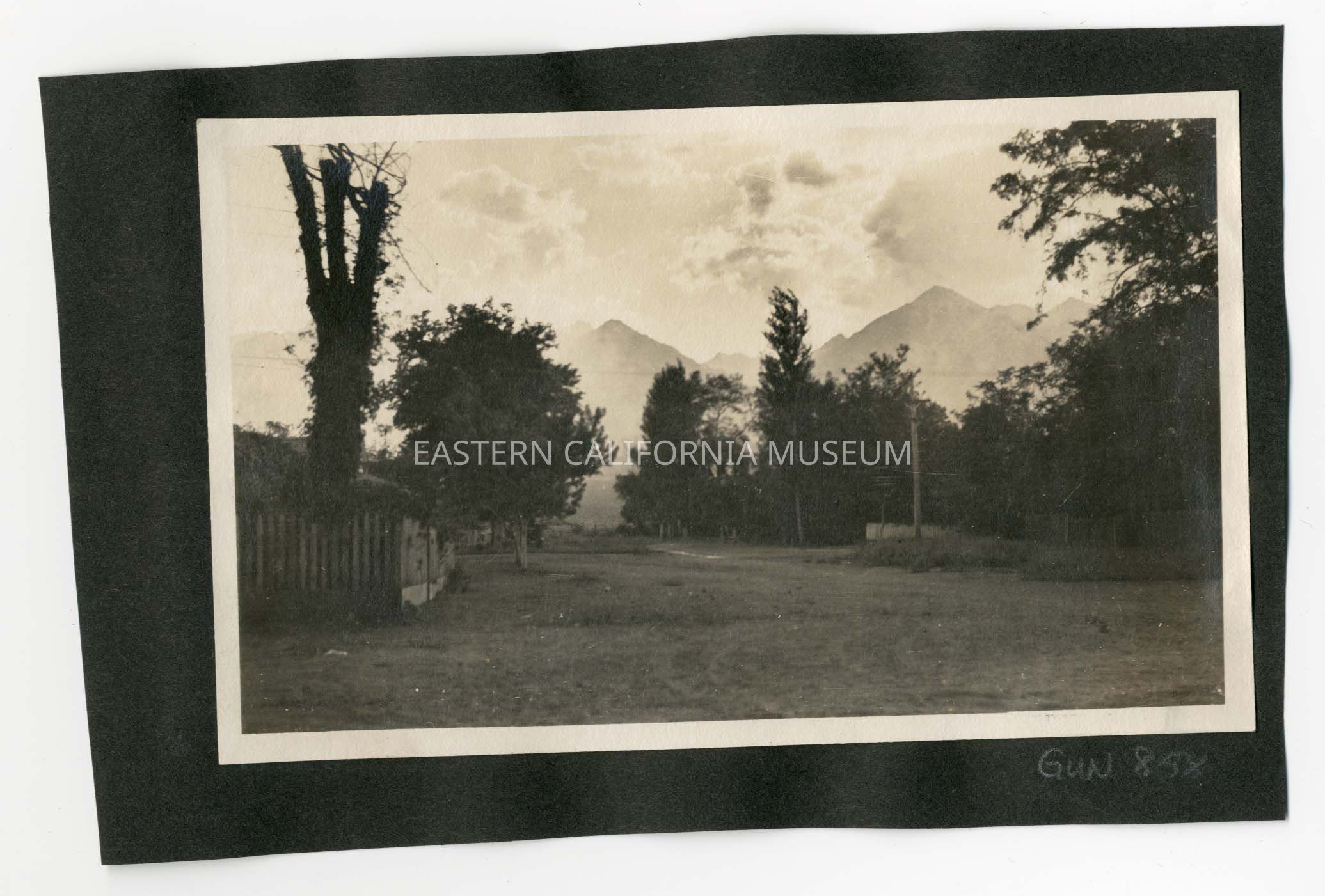 Photo of a street in Independence looking west towards the Sierra Nevada mountain range.