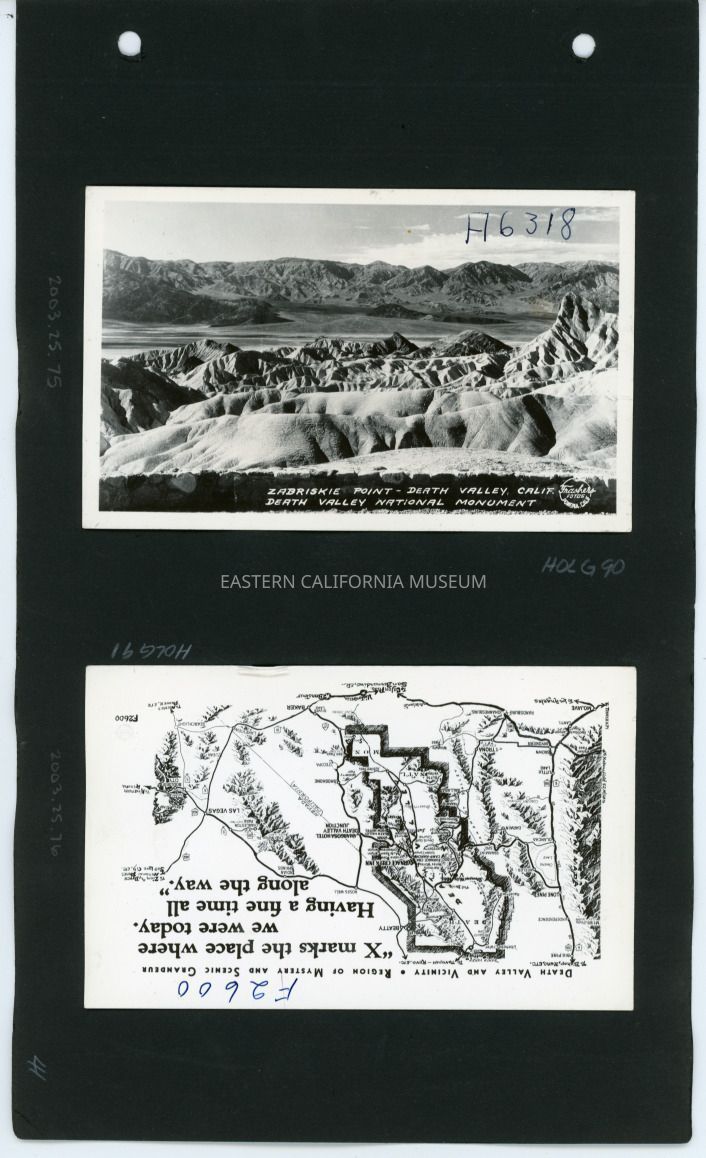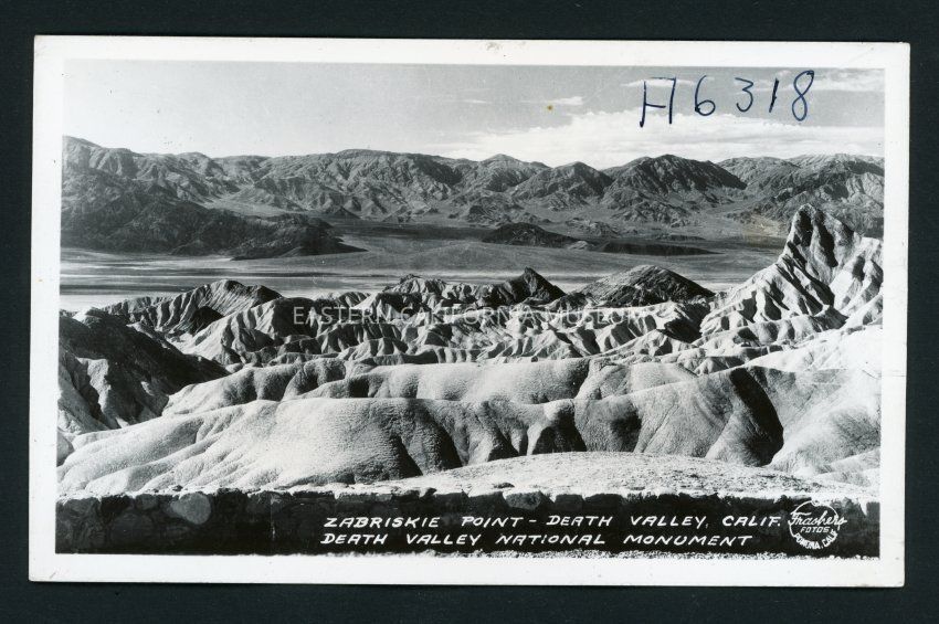 Zabriskie Point Death Valley, Calif. Death Valley National Monument A6318 Copyright Frashers Fotos Pomona Calif. This photo is detached from the album page.