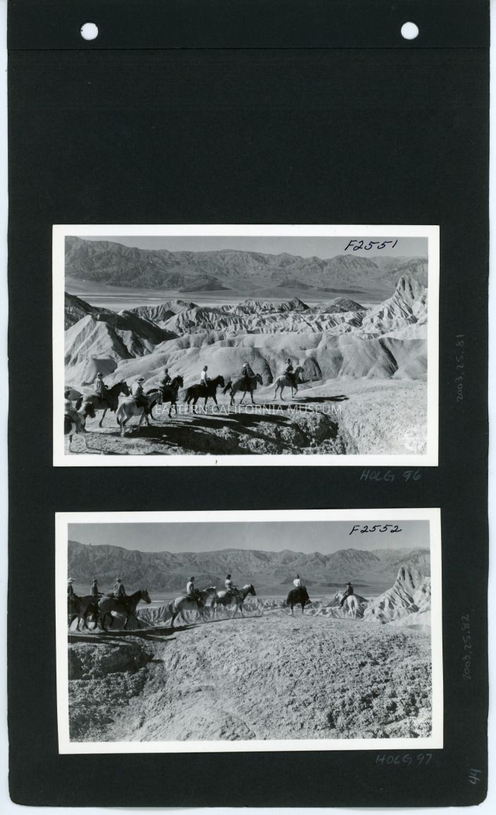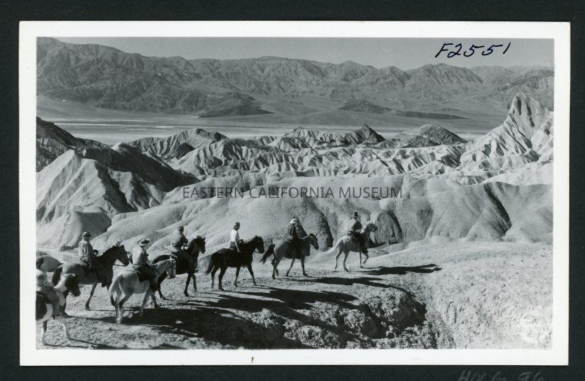 [No label] F2551 Copyright Frashers Fotos Pomona Calif. This is a photo of a group of people on horseback riding through Death Valley.