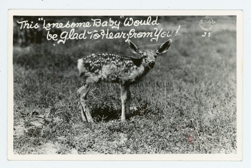 This is a photo of a fawn/baby deer. Photo is detached from album page.
