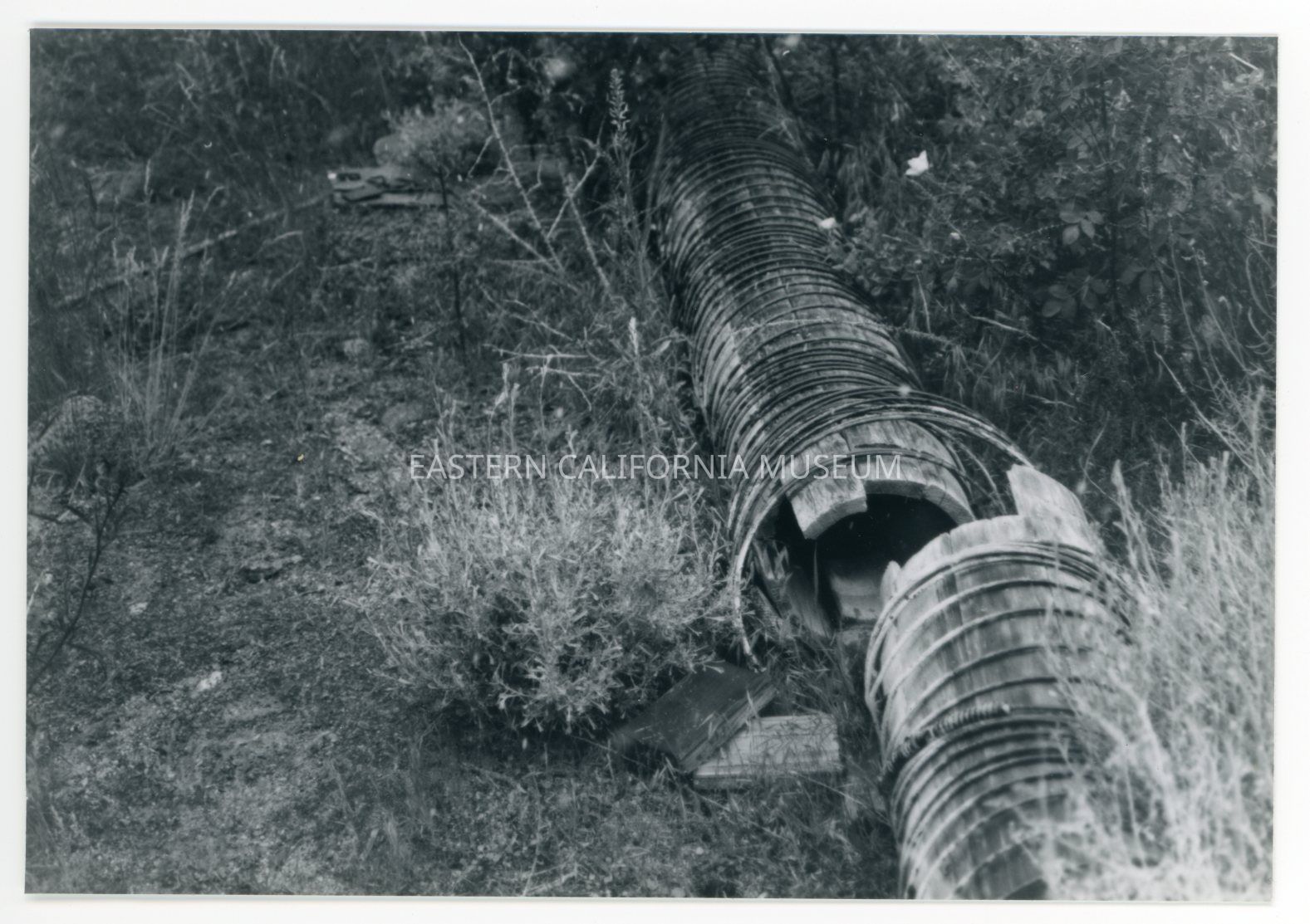 1982.24.1--Old wooden pipeline at Beveridge mining camp.