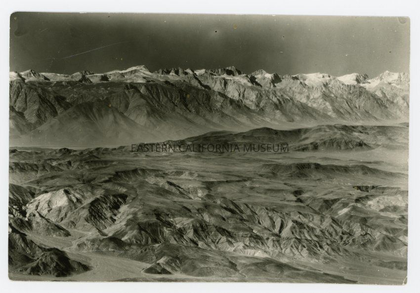 Photo of desolate mountainous landscape. It is identified on the reverse as being Mt. Whitney taken from Telescope Peak in Death Valley. The photographer was Bob McConaughy.Collection