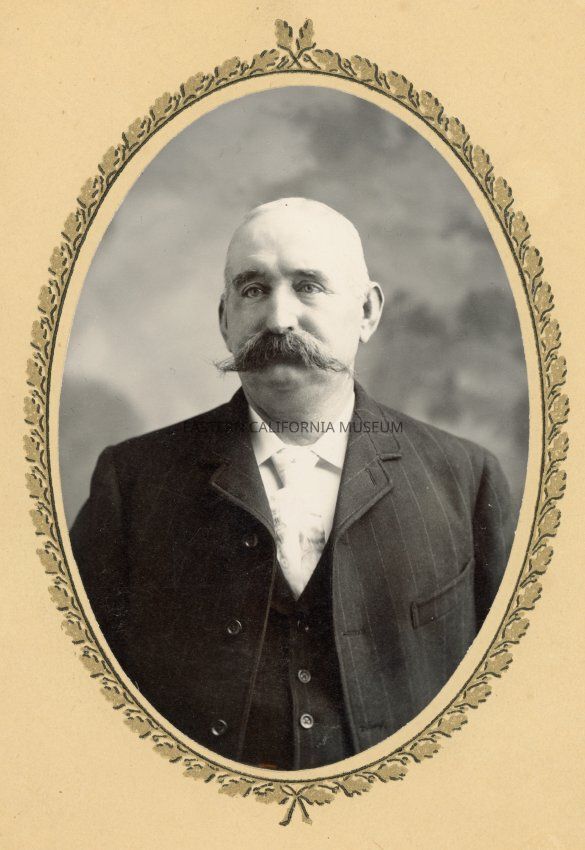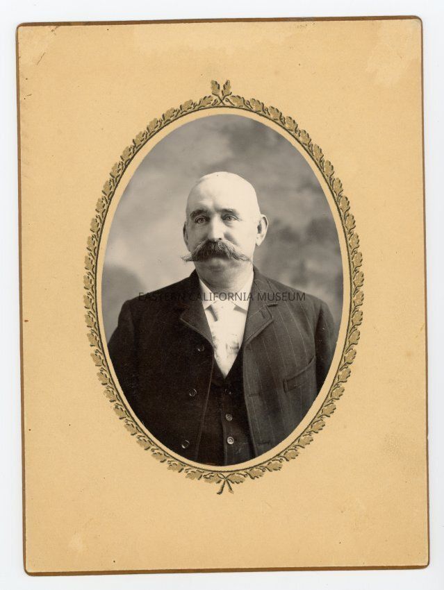 Mounted bust-length studio portrait of Tom Callow, a Big Pine resident who once owned the Big Pine Hotel.