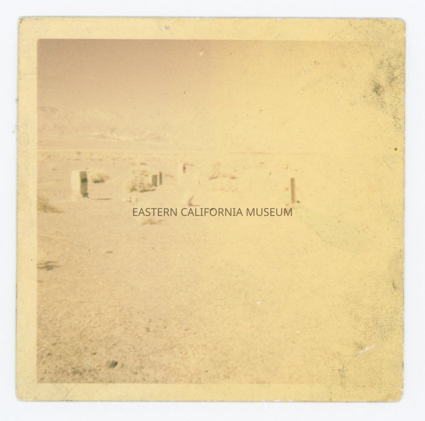 Faded color photo of what appears to be a cemetery in a desert.