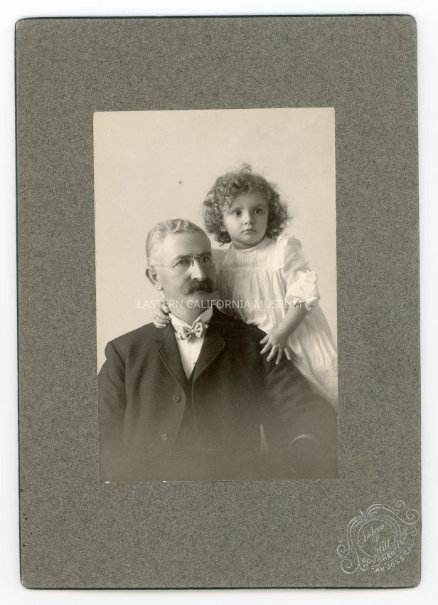 Mounted studio portrait of Birdie Yandell as a little girl and Walter A. Lamar, an Inyo County Judge from 1896-1908. Photographer was Andrew P. Hill of San Jose, CA.Collection