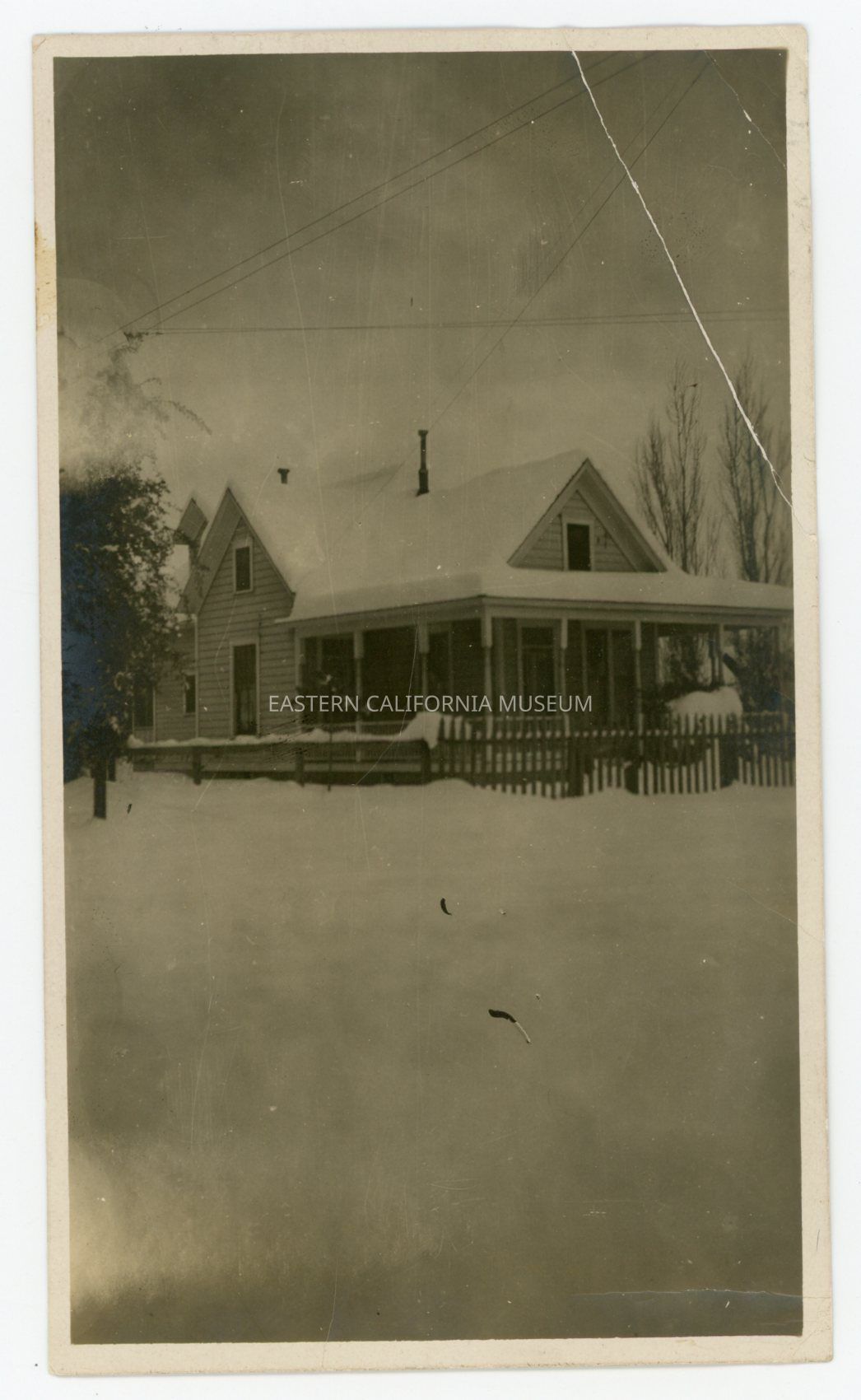 Photo of a house blanketed in snow. Location may be the Kilpatrick home on Bishop Creek.Collection