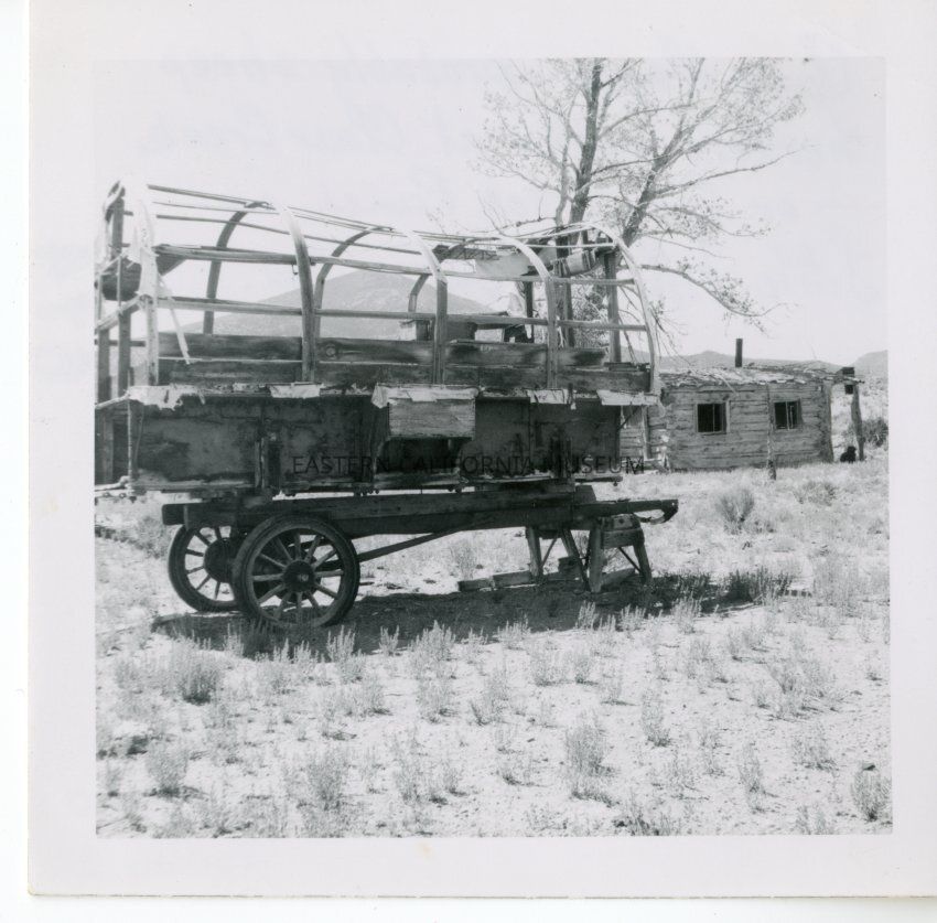 Reverse: Handwritten in blue ink: Camp wagon--probably sheep herder's abode at Clear Creek or Dry Creek Ranch in Little Fish Lake Valley, Nev.Collection