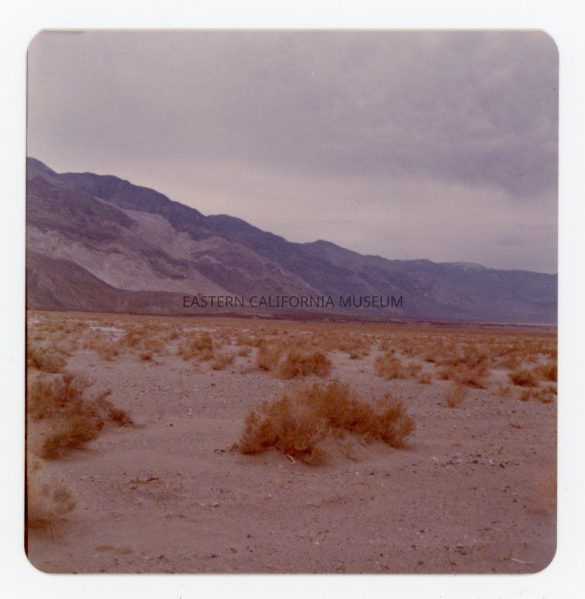Color photo of the desert landscape and mountains, possibly in Saline Valley.