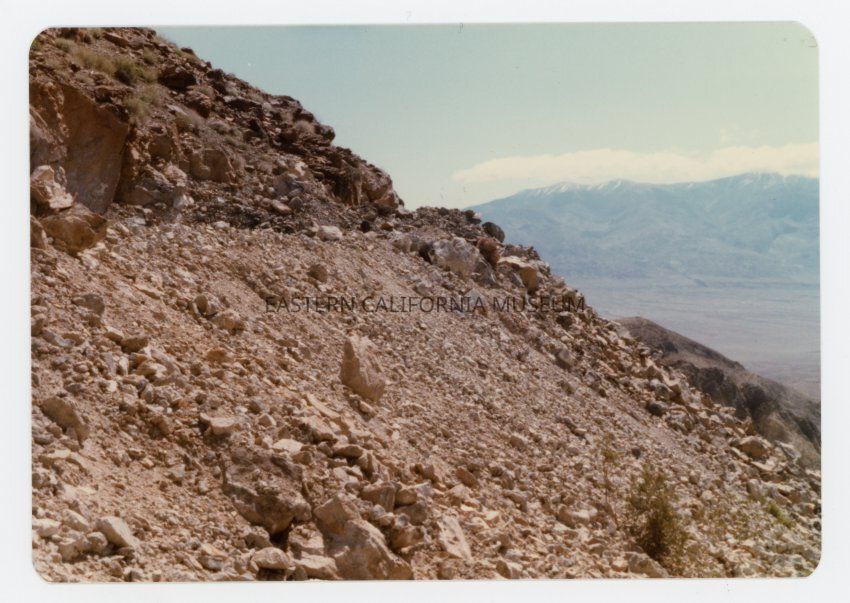 Information from accession paperwork: Collection of photos of the old stage and freight road and retaining wall in Stone Canyon in the Argus Range that led into the Panamint Valley. Photo taken near the Modoc (Calero Puro) Mine. Chinese laborers built the retaining wall circa 1875.Collection