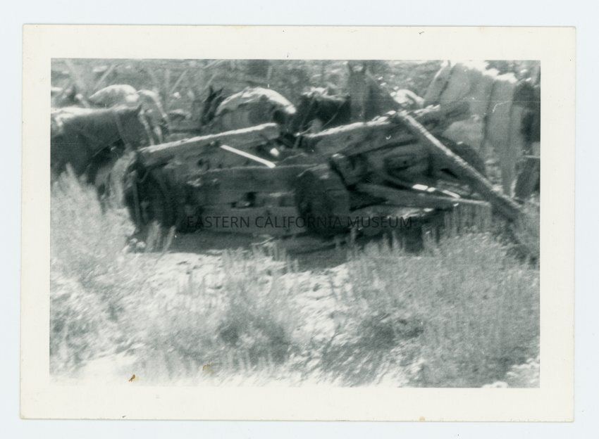 Photo of what appears to be a wagon at the Cottonwood Sawmill in 1940 before the mill burned. There are several horses in the photo. Photo taken by Dr. George Shultz.Collection
