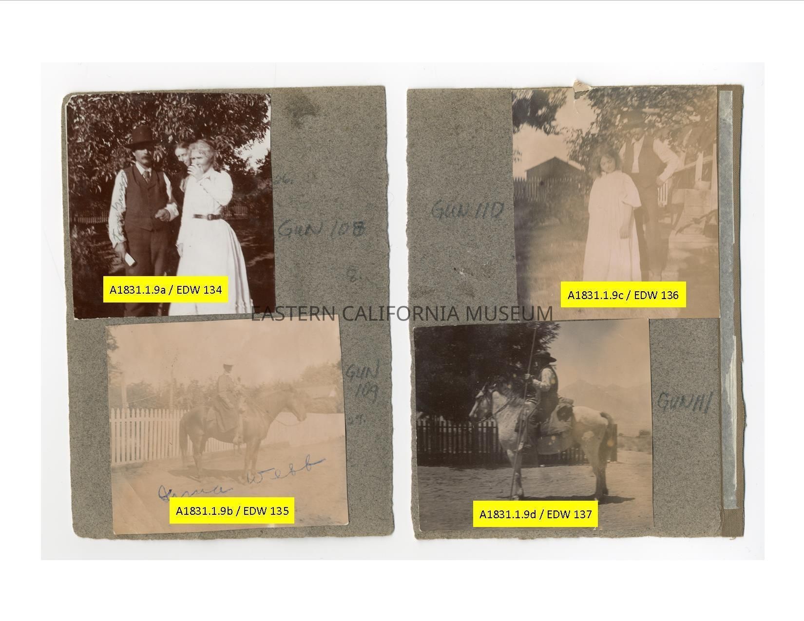 A1831.1.9d: Photo of an unidentified man on horseback. There is a picket fence in the background.Collection
