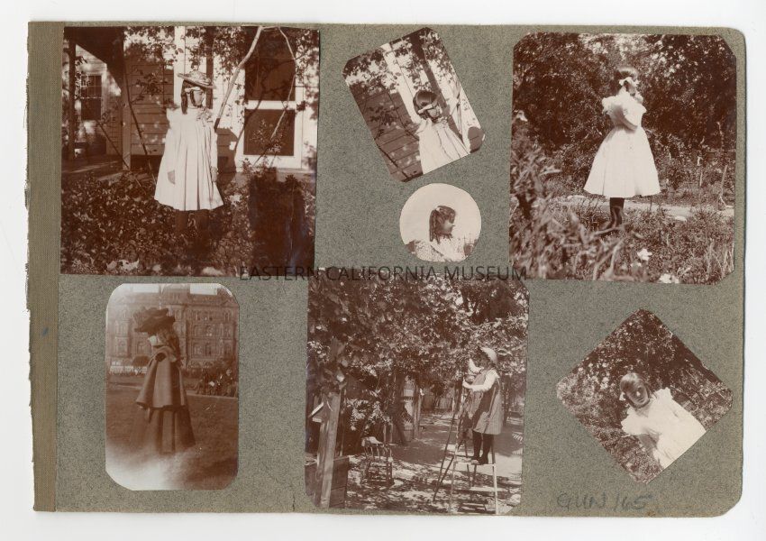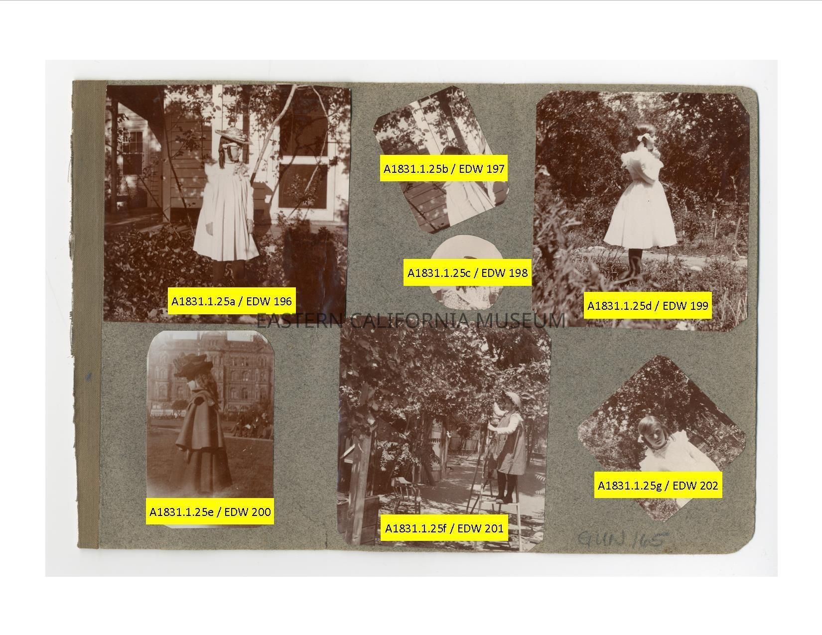 A1831.1.25f: Exterior photo of Helen Gunn on a ladder, possibly picking fruit.