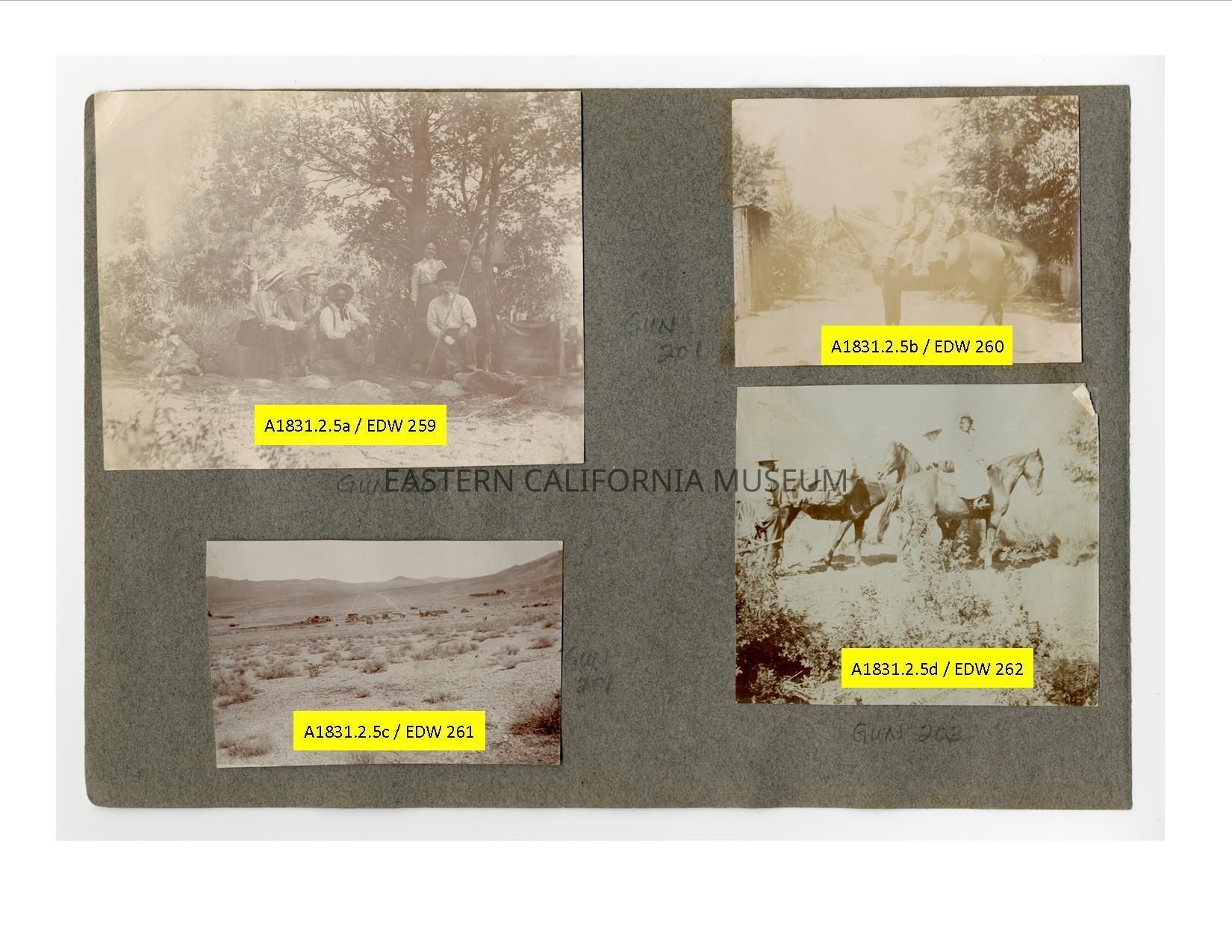 A1831.2.5b: Exterior photo of four boys bareback on a horse. Photo is badly faded.