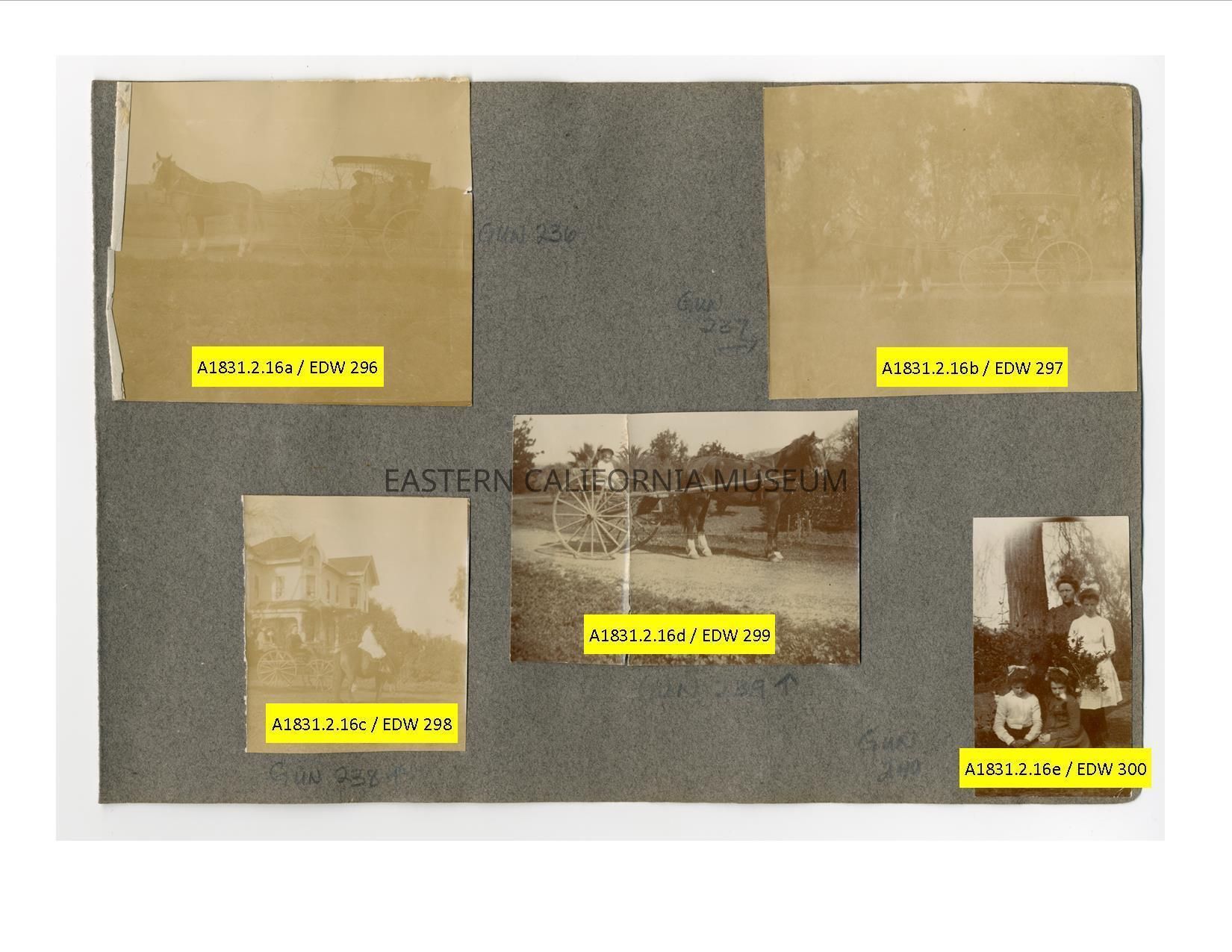 A1831.2.16b: Photo of people in a horse drawn buggy (has roof/shade). Photo is badly faded.