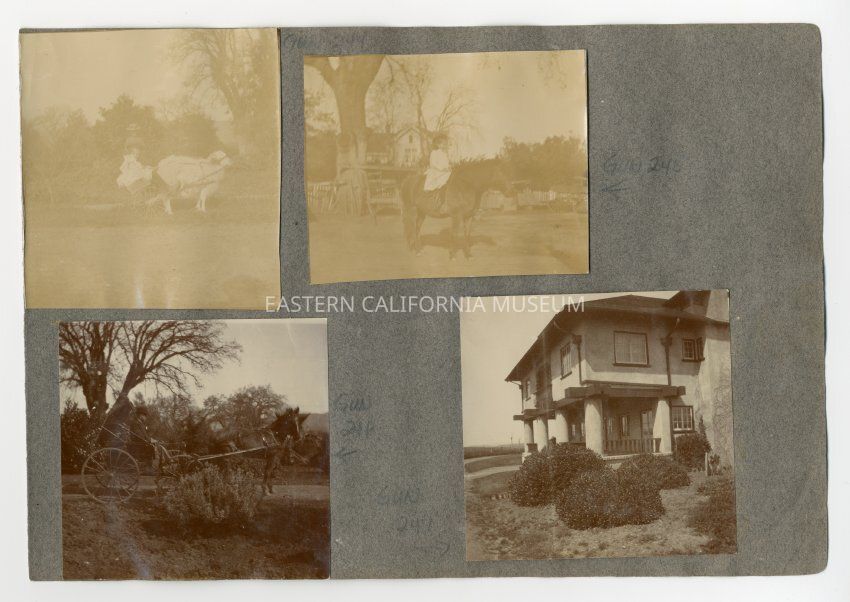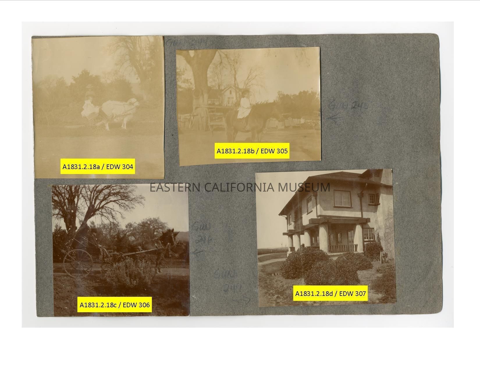 A1831.2.18b: Photo of a young girl on a horse with a house in the background. Photo is badly faded.