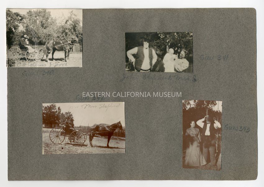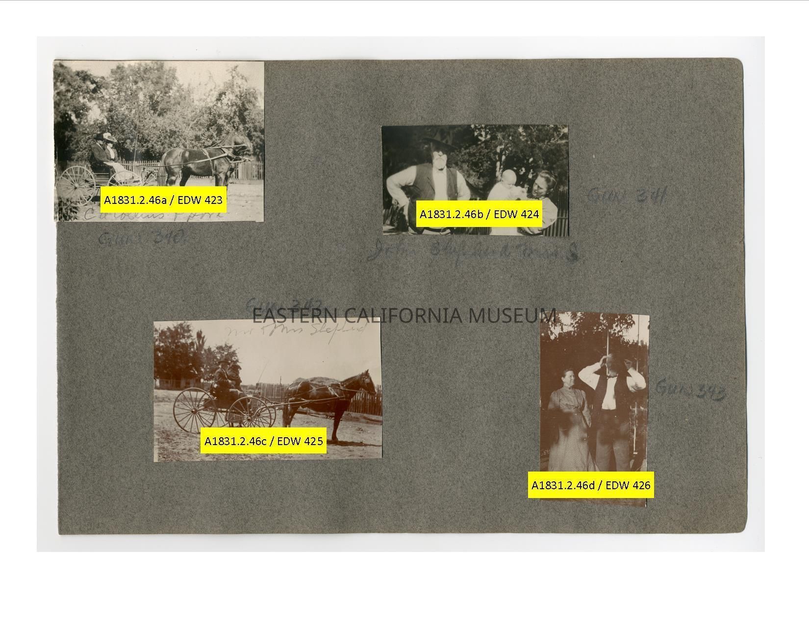 A1831.2.46c: Exterior photo of John and Margaret Shepherd in a horse drawn buggy.