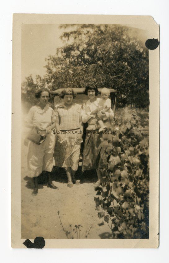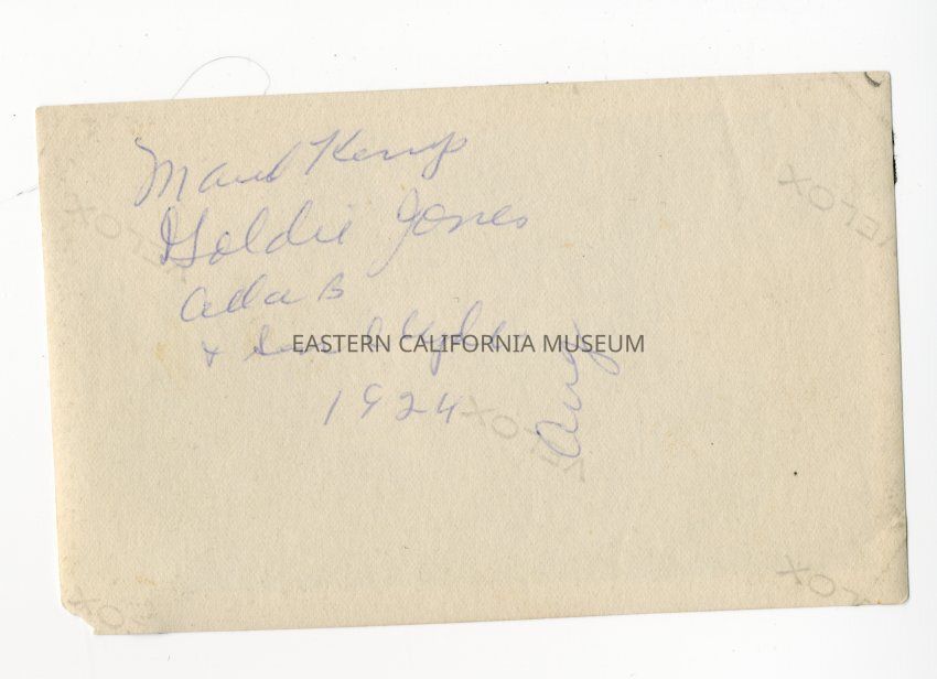 Reverse, handwritten in blue ink: Maud Kemp, Goldie Jones, Ada B, and son Clyde. Aug 1924.Collection