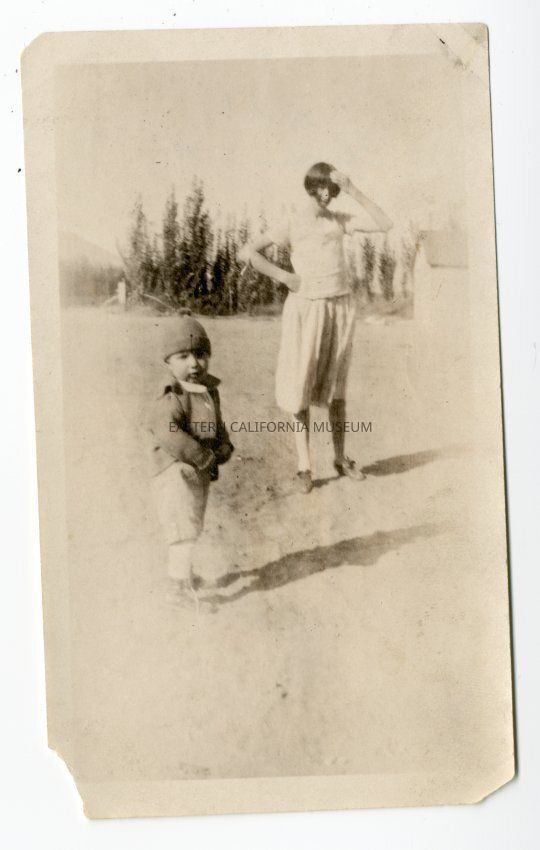 B&W. Digital only, the hardcopies were returned to owner after scanning. Small child and woman. Trees, house or other structure in background.